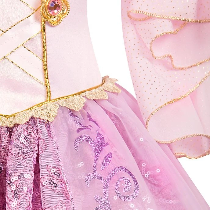 Votre petite peut se lâcher les cheveux et faire sensation dans cette sublime robe de déguisement Raiponce ! Ce magnifique modèle de luxe comporte des bordures en dentelles, des manches bouffantes, une jupe ample avec empiècements rehaussés de sequins et une sur-jupe en organza.