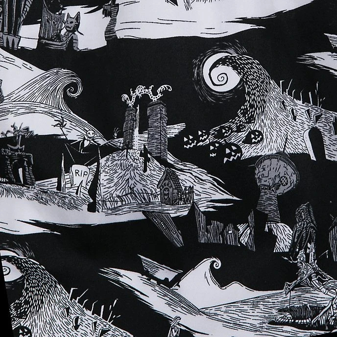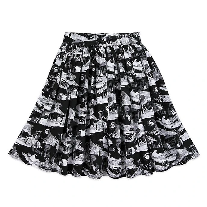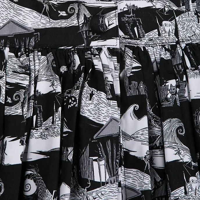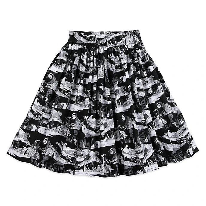 Halloween-ville a trouvé sa nouvelle Reine des citrouilles ! Délicieusement terrifiante, cette jupe trapèze confectionnée en noir et blanc est garnie d’un imprimé inspiré du grand classique.