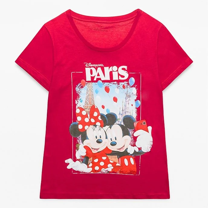Oh la la ! Ce t-shirt aux couleurs vives représente Mickey et Minnie Mouse prenant la pose devant des monuments parisiens et les lieux emblématiques des Parcs. Un super souvenir pour vous-même ou bien à offrir !